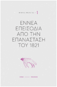 Έχοντας το προνόμιο να αποτελεί σχεδόν τη μοναδική επιστημονική εταιρεία που συντήρησε τις μελέτες για την Επανάσταση του 1821 σε καιρούς ερευνητικής ξηρασίας, η Εταιρεία Μελέτης Νέου Ελληνισμού κατάρτισε, με αφορμή την επέτειο των 200 χρόνων, ένα πλούσιο συνεδριακό και εκδοτικό πρόγραμμα, στο πλαίσιο του οποίου δρομολόγησε και την ανά χείρας έκδοση. Στον μικρό αυτό τόμο περιλαμβάνονται εννέα σύντομα μελετήματα, που κινούνται, χρονολογικά, πέριξ του 1821, τα οποία αφορούν ισάριθμα σύντομα επεισόδια, τα οποία οι συγγραφείς των κεφαλαίων αναλύουν και τοποθετούν στην ιστορική τους συνάφεια. Δίνοντας έμφαση στην ανάδειξη αναξιοποίητου αρχειακού υλικού, αλλά και στην πρωτοτυπία της πραγμάτευσης, τα κείμενα εξετάζουν ζητήματα όπως ο πολιτικός χαρακτήρας της διαμάχης Κοραή – Κορδικά (Κ. Ηροδότου), η δικτύωση της Φιλικής Εταιρείας στην Αίγυπτο (Β. Σαράφης), οι αντιλήψεις περί «έθνους» και «ελευθερίας» των οθωμανικών αρχών (Γ. Ζιγιά Καραμπατσάκ), η οθωμανική κατασκοπία και αντικατασκοπία (Λ. Μοίρας), η τύχη των αιχμαλώτων γυναικών (Β. Ράπτη), ο ευρωπαϊκός τρόπος ζωής των ελίτ της Ερμούπολης, όπως αποτυπώνεται στη δραστηριότητα μιας διάσημης μοδίστρας της πόλης (Ό. Ευαγγελίδου), οι μαρτυρίες για τη δράση του υποπρόξενου του Βασιλείου των Δύο Σικελιών στην Αθήνα (Φ. Σκαλόρα) και του πρόξενου της Γαλλίας στη Σμύρνη (Ά. Αθανασούλη), αλλά και τα ίχνη των οικισμών της Πελοποννήσου που καταστράφηκαν κατά τη διάρκεια του πολέμου (Μ. Φέστας). Τον τόμο, με τον οποίο εγκαινιάζεται μια νέα σειρά, που θα περιλαμβάνει «Μικρές Μελέτες», με αφορμή ένα συμβάν, ένα τεκμήριο, μια μικρή ιστορία, προλογίζει ο ιστορικός Χρήστος Λούκος, ιδρυτικό μέλος της ΕΜΝΕ, προβαίνοντας σε έναν πρώτο ερευνητικό και ιστοριογραφικό απολογισμό των δράσεων της δισεκατοντετηρίδας.