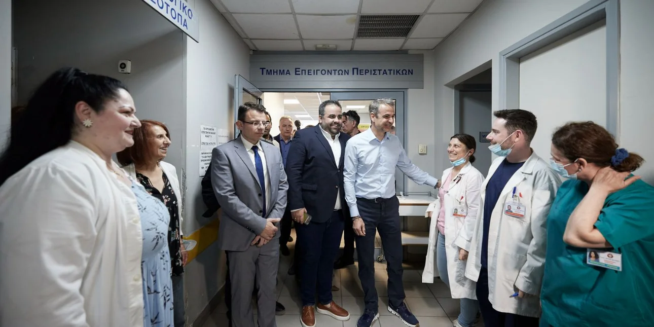 Ο Κυριάκος Μητσοτάκης στο νοσοκομείο «Άγιος Παύλος», στη Θεσσαλονίκη