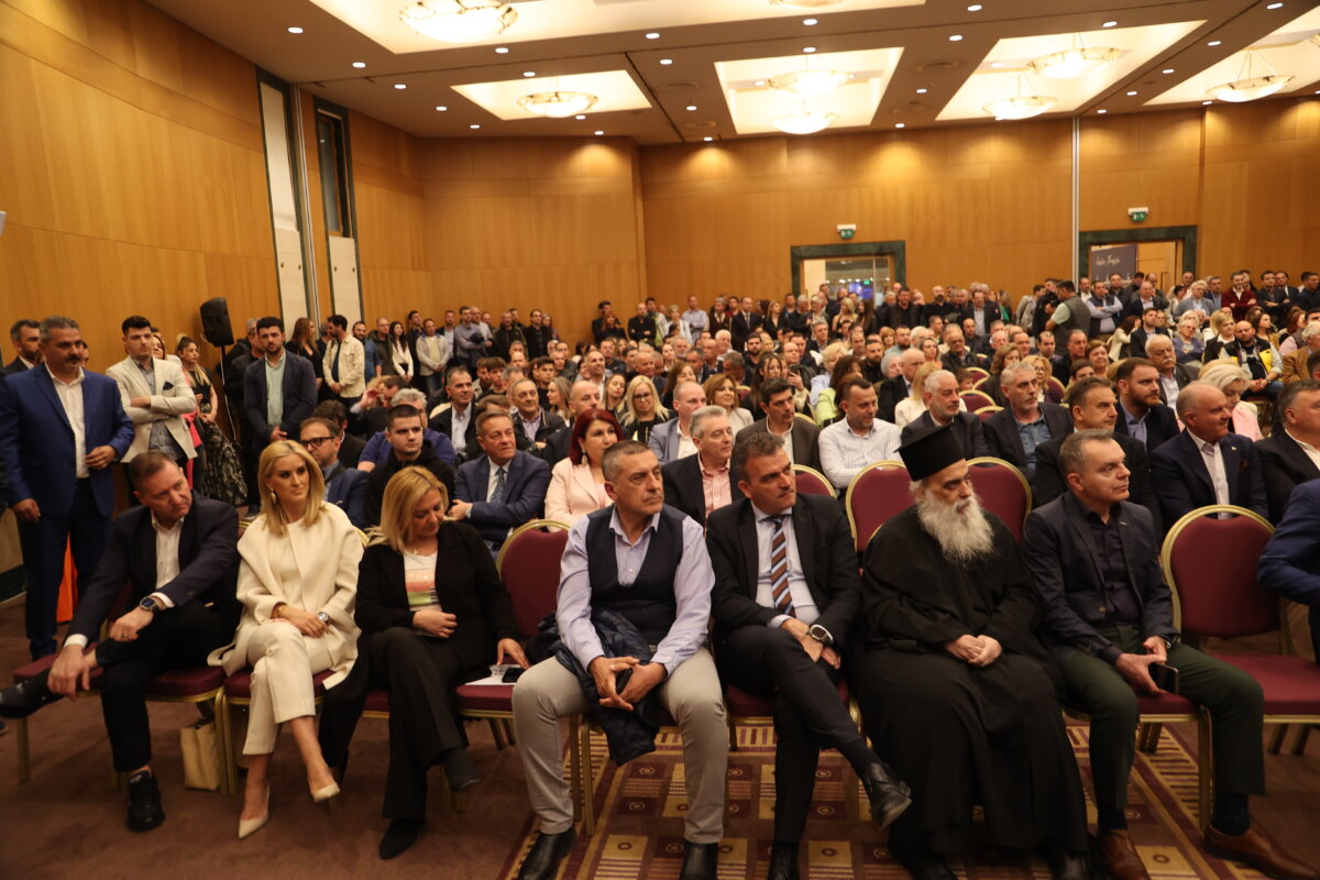 Ο παρουσιαστής της εκδήλωσης -δημοσιογράφος εξ Αθηνών- προφανώς είχε μείνει στο παρελθόν, προσφωνώντας ως “Περιφερειάρχη Θεσσαλίας” τον παριστάμενο Κώστα Αγοραστό και όχι τον επίσης παριστάμενο Δημήτρη Κουρέτα.