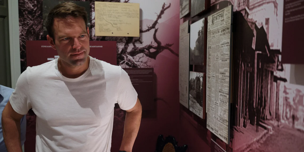 Ο Στέφανος Κασσελάκης στο Μουσείο Νίκος Μπελογιάννης, στην Αμαλιάδα / Φωτογραφία: ΓΡ. ΤΥΠΟΥ ΣΥΡΙΖΑ-ΠΣ/EUROKINISSI