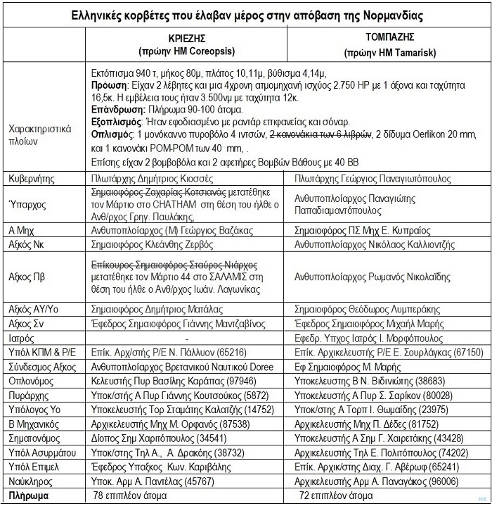 Χάρις στα πλοία αυτά, το όνομα της χώρας μας συμπεριλήφθηκε στο ανακοινωθέν που ακούστηκε στο πρωινό δελτίο ειδήσεων του BBC της 6ης Ιουνίου 1944 σε όλο τον κόσμο, που έλεγε: «Ναυτικές δυνάμεις των ΗΠΑ, του Ηνωμένου Βασιλείου, της Γαλλίας, του Καναδά, της Πολωνίας, της Ολλανδίας, της Νορβηγίας και της Ελλάδος ενήργησαν σήμερα απόβαση εις την Ευρώπην».