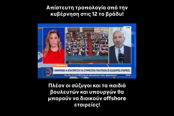 η σύζυγος του Γκραμπόφσκι Μαρία-Εύα-Βιργινία γνωστή στην πιάτσα ως «Μαρέβα» τα «μαγειρέψανε» σωστά. Χθες βράδυ 13.05.2025 όταν εσείς όλοι κοιμόσασταν βαθιά, πέρασαν τροπολογία νόμου στην Βουλή όπου οι σύζυγοι και τα παρένθετα πρόσωπα θα μπορούνε να έχουν εταιρείες στο εξωτερικό χωρίς να έχουν την υποχρεώσει να το δηλώνουν. Για αυτό η μεγάλη καθυστέρηση στην υποβολή των Δηλώσεων Περιουσιακών Στοιχείων - ΠΟΘΕΝ ΕΣΧΕΣ Τροπολογία για την Απαγόρευση συμμετοχής πολιτικών προσώπων σε εταιρείες με έδρα στο εξωτερικό Στην αιτιολογική έκθεση υπογραμμίζεται η ανάγκη «εξορθολογισμού» για τα συγγενικά και συνδεδεμένα πρόσωπα, προκειμένου να μην επιβάλλονται περιορισμοί σε άτομα που δεν έχουν προσωπική πολιτική ιδιότητα. Με Τροπολογία που κατατέθηκε στη Βουλή, τροποποιείται το άρθρο 8 του ν.3213/2003 αναφορικά με τους περιορισμούς υπόχρεων σε δήλωση περιουσιακής κατάστασης πολιτικών προσώπων καθώς και των παρένθετων προσώπων αυτών όσον αφορά στη συμμετοχή σε εταιρείες με έδρα την αλλοδαπή. Σύμφωνα με την συνοδευτική έκθεση, με την προτεινόμενη ρύθμιση διατηρείται η οριζόντια απαγόρευση της συμμετοχής των προσώπων της παρ. 1 του άρθρου 8 του ν. 3213/2003 (Α' 309) (Πρωθυπουργός, αρχηγοί των πολιτικών κομμάτων που εκπροσωπούνται στο Εθνικό ή το Ευρωπαϊκό Κοινοβούλιο καθώς και όσων λαμβάνουν κρατική χρηματοδότηση, Υπουργοί, αναπληρωτές υπουργοί, Υφυπουργοί, βουλευτές και ευρωβουλευτές, όσοι διαχειρίζονται τα οικονομικά των ανωτέρω πολιτικών κομμάτων, Γενικοί και Ειδικοί Γραμματείς της Βουλής και της Γενικής Κυβέρνησης, περιφερειάρχες και δήμαρχοι) σε εταιρείες με έδρα την αλλοδαπή. ΌΣΟΝ ΑΦΟΡΑ, ΟΜΩΣ, ΣΤΟΥΣ ΣΥΖΥΓΟΥΣ, ΕΝ ΔΙΑΣΤΑΣΕΙ ΣΥΖΥΓΟΥΣ, ΠΡΟΣΩΠΑ ΜΕ ΤΑ ΟΠΟΙΑ ΕΧΟΥΝ ΣΥΝΑΨΕΙ ΣΥΜΦΩΝΟ ΣΥΜΒΙΩΣΗΣ, ΤΟΥΣ ΠΡΩΤΟΥ ΒΑΘΜΟΥ ΣΥΓΓΕΝΕΙΣ, ΚΑΘΩΣ ΚΑΙ ΚΑΘΕ ΑΛΛΟ ΦΥΣΙΚΟ Η ΝΟΜΙΚΟ ΠΡΟΣΩΠΟ ΠΟΥ ΘΑ ΜΠΟΡΟΥΣΕ ΝΑ ΘΕΩΡΗΘΕΙ ΟΤΙ ΕΝΕΡΓΕΙ, ΓΙΑ ΟΠΟΙΑΔΗΠΟΤΕ ΑΙΤΙΑ, ΓΙΑ ΛΟΓΑΡΙΑΣΜΟ Η ΚΑΘ' ΥΠΟΔΕΙΞΗ Η ΚΑΤ' ΕΝΤΟΛΗ ΤΩΝ ΑΝΩΤΕΡΩ ΠΡΟΣΩΠΩΝ ΤΗΣ ΠΑΡ. 1, Ο ΑΝΩΤΕΡΩ ΣΗΜΑΝΤΙΚΟΣ ΠΕΡΙΟΡΙΣΜΟΣ ΤΗΣ ΟΙΚΟΝΟΜΙΚΗΣ ΕΛΕΥΘΕΡΙΑΣ, ΟΠΩΣ ΚΑΤΟΧΥΡΩΝΕΤΑΙ ΚΑΤΑ ΤΟ ΣΥΝΤΑΓΜΑ ΚΑΙ ΤΟ ΕΝΩΣΙΑΚΟ ΔΙΚΑΙΟ, ΧΡΗΖΕΙ ΕΞΟΡΘΟΛΟΓΙΣΜΟΥ. greekcorruption.dk/el/%ce%be%ce%a Τούτο είναι αναγκαίο διότι τα ανωτέρω πρόσωπα που απλώς τυγχάνει να συνδέονται προσωπικά με πολιτικά πρόσωπα δεν έχουν επιλέξει τα ίδια μια τέτοια πολιτική δραστηριότητα- κρίνεται, συνεπώς, αναλογικότερο να απαγορεύεται να συμμετέχουν όχι σε κάθε εταιρεία που εδρεύει στο εξωτερικό, αλλά μόνο σε όσες εταιρείες έχουν πραγματική ή καταστατική έδρα σε κράτος μη συνεργάσιμο στον φορολογικό τομέα ή σε κράτος, που έχει προνομιακό φορολογικό καθεστώς κατά την έννοια του άρθρου 65 του Κώδικα Φορολογίας Εισοδήματος (ν. 4172/2013, Α' 167), και εκείνη των υπουργικών αποφάσεων, που εκδίδονται βάσει των ως άνω διατάξεων και ισχύουν κάθε φορά, όπως άλλωστε συμβαίνει ήδη και στις κατηγορίες προσώπων της παρ. 2 του ανωτέρω άρθρου 8 του ν. 3213/2003. Ως προς τα ανωτέρω κράτη, βλ. σήμερα την υπό στοιχεία Α1205/19.12.2023 κοινή απόφαση του Υπουργού και του Υφυπουργού Εθνικής Οικονομίας και Οικονομικών «Καθορισμός των κρατών που έχουν προνομιακό φορολογικό καθεστώς, με βάση τις διατάξεις των παρ. 6 και 7 του άρθρου 65 του ν. 4172/2013, για το φορολογικό έτος 2022» (Β' 7341) καθώς και την υπό στοιχεία Α1198/20.12.2024 κοινή απόφαση του Υπουργού και του Υφυπουργού Εθνικής Οικονομίας και Οικονομικών «Καθορισμός των μη συνεργάσιμων κρατών για το φορολογικό έ
