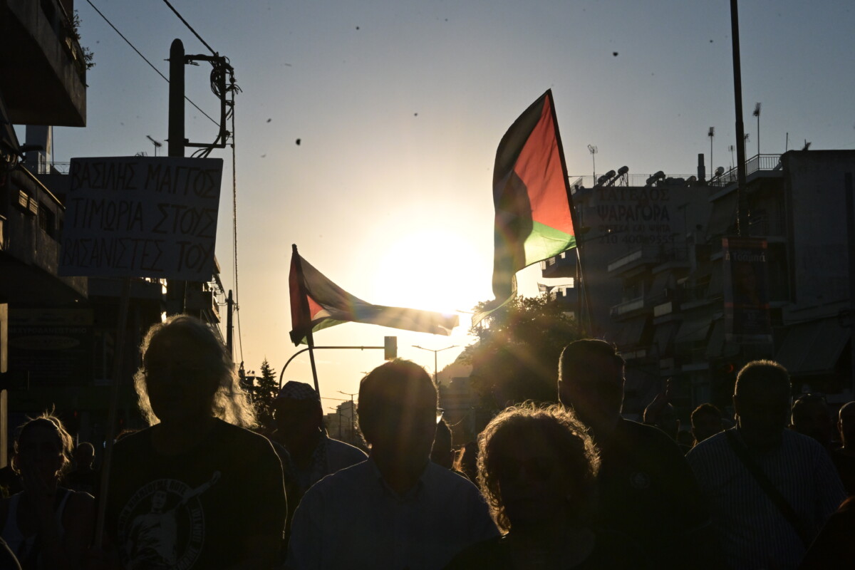 Στην πορεία υπήρχαν και πολλές σημαίες της Παλαιστίνης. Άλλωστε, «Παύλος Φύσσας» ονομάστηκε και ένα από τα σκάφη του στόλου «Global Sumud Flotilla», που κατευθύνονται στη Γάζα για να σπάσουν τον ισραηλινό αποκλεισμό.