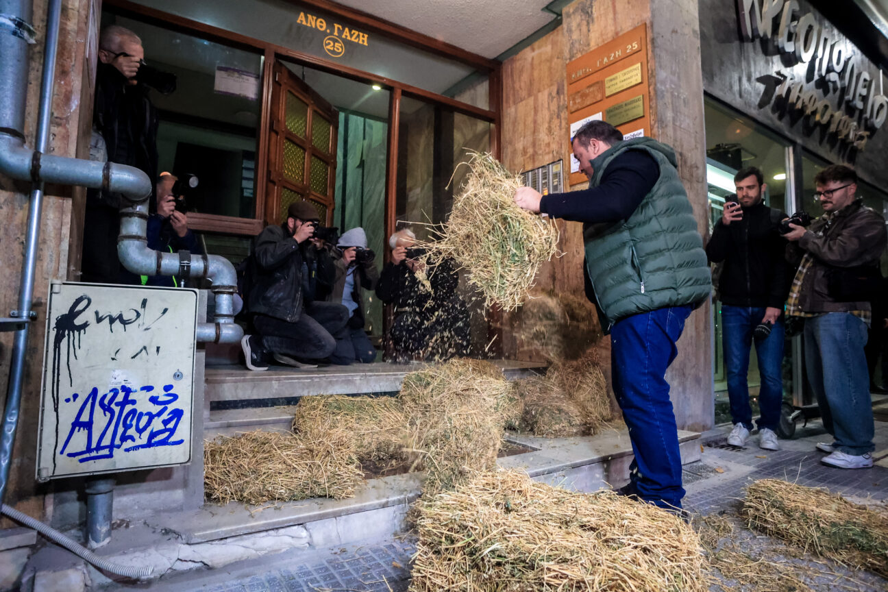 Αγροτική οργή στη Λάρισα: Έριξαν σανό έξω από γραφεία βουλευτών της ΝΔ (video)